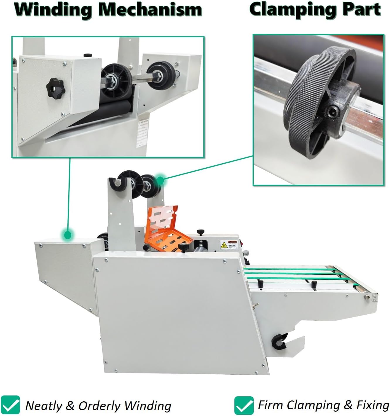 Product Parameter: Maximum laminating width: 350mm (13.78in) Laminating speed: 5m/min Laminating temperature: 70-130˚C Power supply: AC110V 50/60Hz 18A Heating power Single side: 850W / Double side: 1800W Heating mode: Steel roller internal heating Laminating mode: Single-sided or double-sided laminating Operation mode: Automatic mode or foot switch control Paper feeding mode: Conveyor belt Paper discharging mode: Winding collection Product size: 60x89x56cm (23.62x35.04x22.05 inches) Net weight: 52kg (114.64LBS)Package Contents: ENT-1201211 x 350mm (13.78") Electric Thermal Roll LaminatorThe LGXEnzhuo 350mm (13.78") Electric Thermal Roll Laminator is a high-performance Steel Roller Hot Laminating Machine engineered for professional environments including offices, schools, print shops, and advertising studios. With a maximum laminating width of 350mm and a consistent speed of 5 meters per minute, it efficiently handles both single-sided and double-sided lamination tasks for documents, posters, photos, and display materials.Equipped with dual internal steel rollers and precise temperature control (70–130°C), the laminator delivers uniform heat distribution for bubble-free, wrinkle-resistant results. Its 1800W dual-side heating system ensures rapid warm-up and stable performance during continuous operation, while the adjustable pressure knob allows customization for various film thicknesses and substrate types.